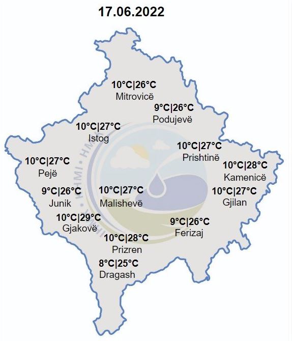 “Temperaturat minimale do të lëvizin ndërmjet 9-13 gradë Celsius, ndërsa maksimalet e ditës parashihen të lëvizin ndërmjet 23-29 gradë Celsius. Indeksi UV mbetet i lartë. Do të fryjë erë nga drejtimi i lindjes dhe verilindjes me shpejtësi 1-5m/s. Gjatë vikendit parashihet të mbajë moti i qëndrueshëm dhe me intervale të gjata me diell”, thuhet në njoftimin e IHK-së.