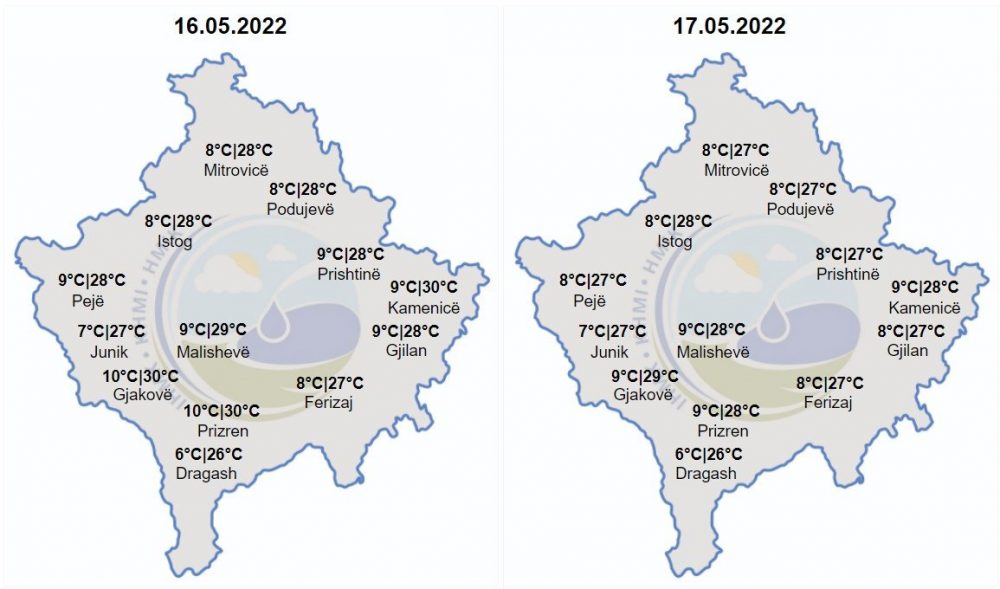 Temperaturat minimale do të lëvizin ndërmjet 5-12 gradë Celsius, ndërsa maksimalet e ditës parashihen të lëvizin ndërmjet 18-30 gradë Celsius.