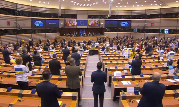 Ka nisur seanca e jashtëzakonshme në Parlamentin Europian e cila po mbahet për agresionin rus ndaj Ukrainës. Të gjithë pjesëmarrësit janë ngritur në këmbë dhe kanë përcjellë duartrokitije të forta për Ukrainën, ndërsa në mesin e tyre ishte dhe përfaqësuesi i Ukrainës.