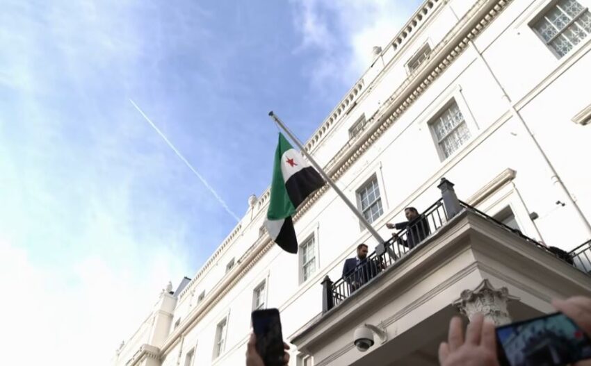 Pas 12 vjetësh, flamuri i Sirisë sërish është ngritur mbi ndërtesën e ambasadës së saj në Londër. Një video e këtij momenti është shpërndarë nga ministri i jashtëm i Sirisë, Asaad al-Shaibani, teksa qëndron për një vizitë zyrtare në Mbretërinë e Bashkuar.