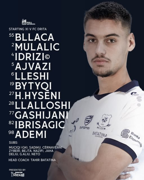 Janë publikuar formacionet zyrtare të ndeshjes mes Dritës dhe Llapit.