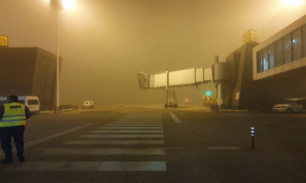 Dukshmëria është 200 metra, dhe për këtë arsye trafiku ajror është i pezulluar.
