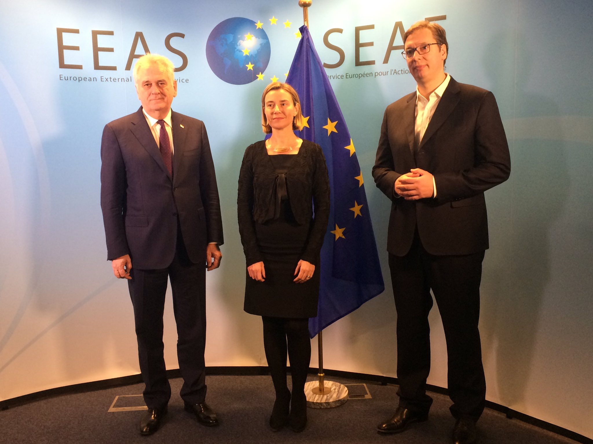 Përfaqësuesja e Lartë e BE-së, Federica Mogherini, fillimisht u takua fillimisht me palën kosovare, presidentin Hashim Thaçi dhe kryeministrin Isa Mustafa, e më pas me përfaqësuesit serbë, presidentin Tomislav Nikoliq dhe kryeministrin Aleksandar Vucic.