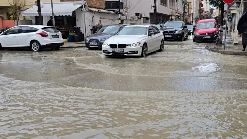 Përmbyten rrugët e Durrësit, vështirësi në lëvizje