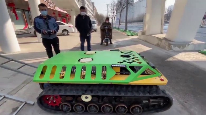 Mini-tanke të kontrolluar nga distanca janë vendosur në rrugët e Kinës në përpjekjen e fundit për të luftuar përhapjen e coronavirusit.