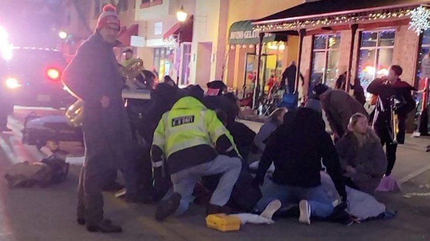 Pamjet tregojnë një SUV të kuq duke lëvizur nëpër një parade të Krishtlindjeve në qytetin e Waukesha, në perëndim të Milwaukee.