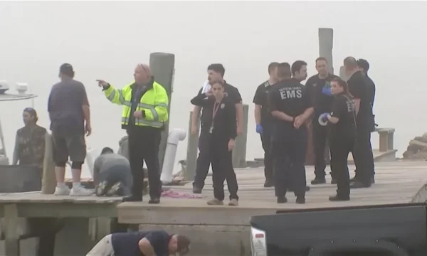Videoja e filmuar pranë Aeroportit Ndërkombëtar Scholes në Galveston tregoi shpëtimtarët, përfshirë një ekip zhytësish, duke punuar në mjegull të dendur.