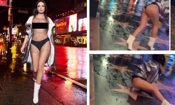 Bleona vetë ka publikuar pamjet ku shihet duke pozuar me një rrjetë, xhaketë e çizme teksa duket në super formë. Mirëpo teksa pozonte, rrugëve të Hollywood-it takat super të larta dhe ambienti i lagur nga shiu, bëri që ajo të rrëshkiste.
