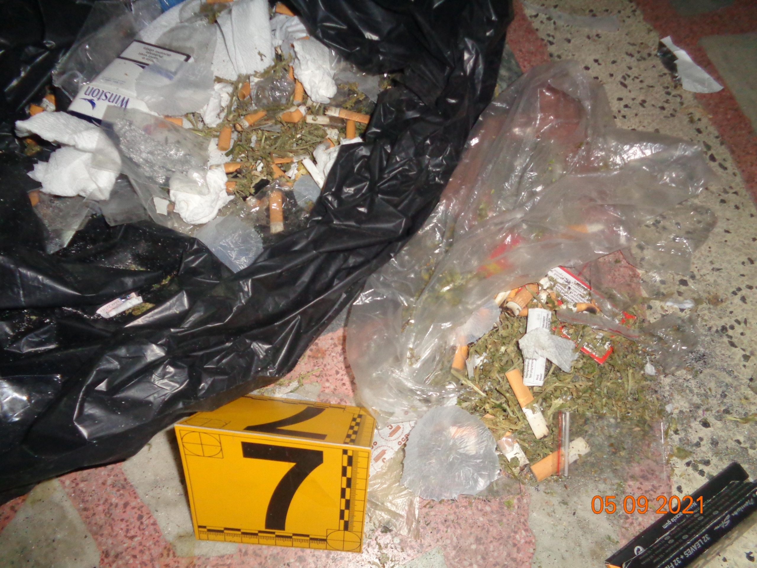Mbetje e substancës së dyshuar narkotike e llojit marihuanë me peshë 99.74 gramë (brenda me qese dhe cigare të përdorura)