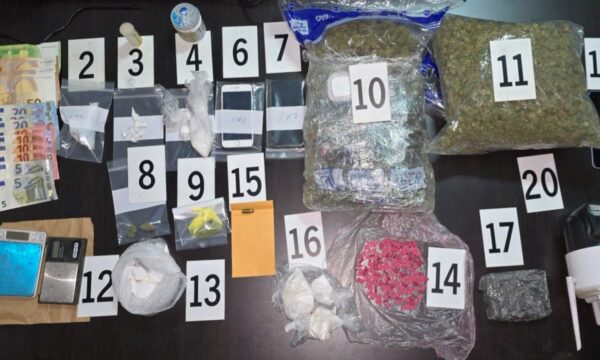 “Si rezultat i punës dhe angazhimeve policore me datë 04.02.2025 në Prizren janë arrestuar tre të dyshuar meshkuj kosovarë për shkak se gjatë kontrollit tek të njëjtit në veturë, shtëpi dhe objekte përcjellëse janë gjetur dhe sekuestruar: 227.33 gramë substancë e dyshuar narkotike e llojit kokainë, 70.98 gramë substancë e dyshuar narkotike e llojit ekstazi, 2087.11 gramë substancë e dyshuar narkotike e llojit marihuanë, 297.32 gramë substancë e dyshuar narkotike e llojit të panjohur, një veturë, dy peshore elektronike, tre telefona celularë, një fishekë, një kamerë, disa dokumente identifikuese të personave të ndryshëm dhe 380€ para të gatshme. Tre të dyshuarit pas intervistimit me vendim të prokurorit janë dërguar në mbajtje, ndërsa një i dyshuar tjetër është në kërkim policor.”