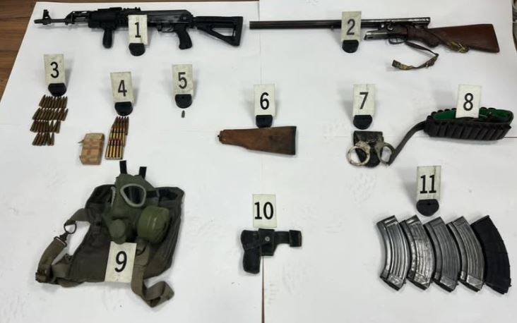 Njësitë policore gjatë kontrollit kanë gjetur dhe konfiskuar: 1 pushkë automatike, 1 pushkë gjahu, 50 fishekë, 1 kondak pushke, 1 palë pranga, 1 mbajtës pushke, 1 maskë kundër helmeve me çantën e saj, 1 këllëf arme dhe 5 karikatorë të zbrazët.