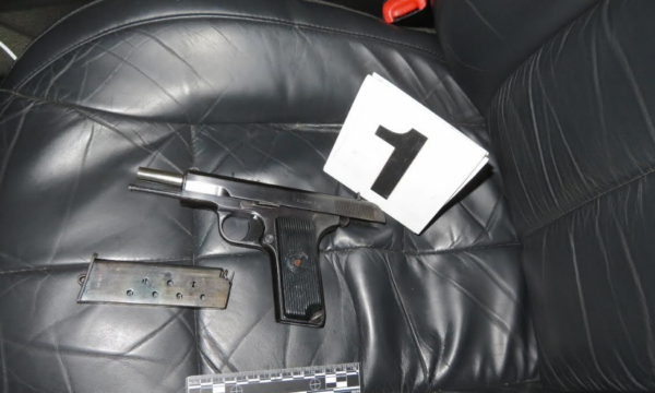 Policia në Pejë ka njoftuar se sot ka ndaluar një veturë ku ka gjetur një armë pistoletë me karikator.