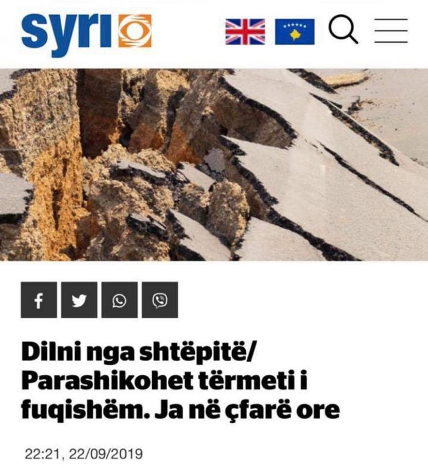 Menjëherë pas publikimit të një lajmi të rremë në portalin “SYRI.net” dhe më pas edhe në disa portale të tjera, se sipas parashikimeve të një sizmologu grek do ketë në orën 23.30 një tërmet të fuqishëm, lajm i cili shkaktoi panik të madh tek qytetarët të cilët braktisën banesat dhe dolën në rrugë, Shërbimet e Drejtorisë Vendore të Policisë Tiranë kanë shoqëruar në Polici gazetarin e portalit “SYRI.net”, Aurel Rakipllari dhe gazetaren Daniela Grica e “Shekullit”, për veprime të mëtejshme, të cilët kanë bërë publikimin e këtij lajmi të rremë, me pasoja paniku te qytetarët.