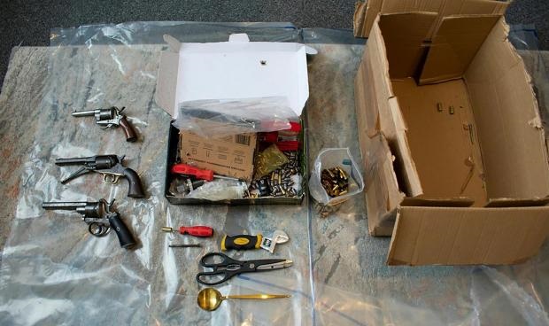 Në banesën e tij u gjetën tri armë të vjetra të modifikuara. Aftësia e tij për të prodhuar ose përshtatur armë e municione u vu re edhe te sendet e tjera të sekuestruara.