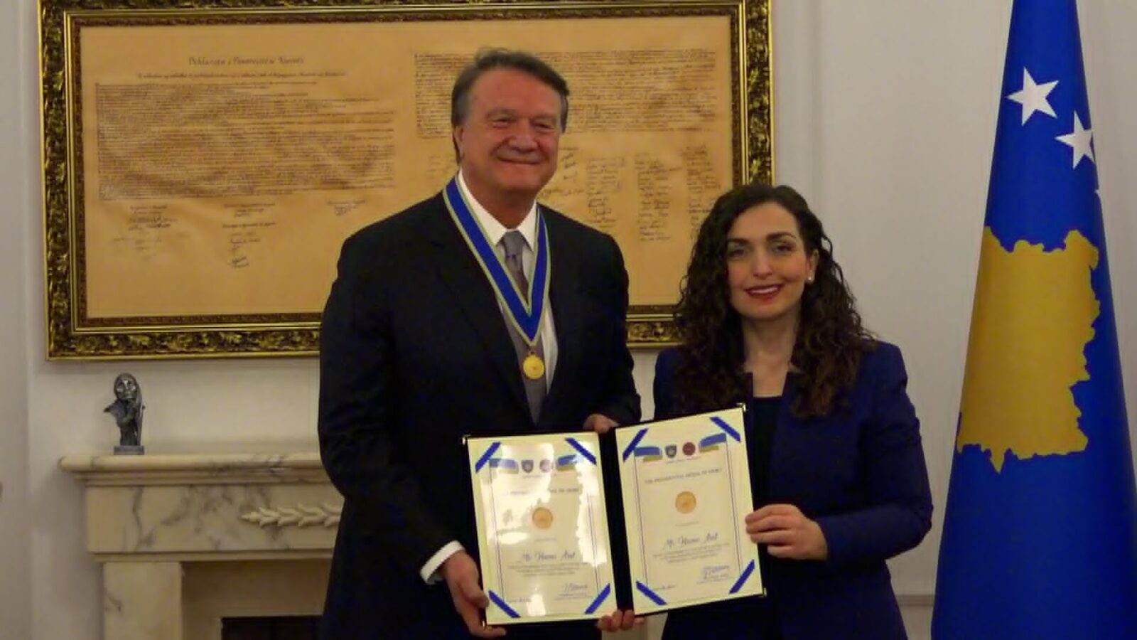 Në ceremoninë e dekorimit, e para e shtetit vlerësoi lartë kontributin e Arat në promovimin e sportit të Kosovës.