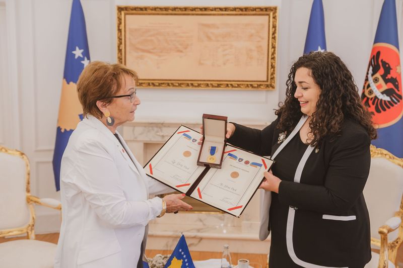 Presidentja e Kosovës, Vjosa Osmani ia dorëzoi sot Doris Pack “Urdhrin e lirisë”, të cilin ia kishte ndarë presidenti Rugova, më 2004, për kontributin e jashtëzakonshëm të saj për lirinë e Kosovës dhe pavarësinë e saj.
