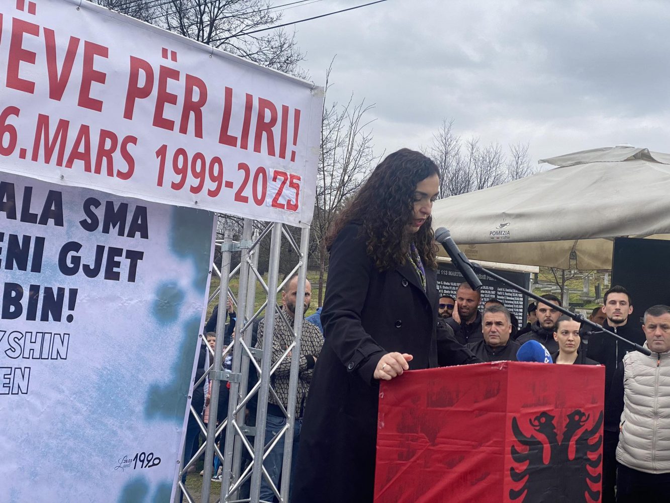 “Një ditë kur edhe heshtja kumbon më shumë se fjalët. Më 1999 ndodhi një nga mizoritë gjenocidale të Serbisë. Për dy ditë u masakruan 113 martirë. Një fshat i tërë u kthye në një varrezë dhe forcat serbe nuk u ndalën vetëm me vrasje, por edhe i dogjën trupat. Serbia dëshmoi edhe një herë përpjekjen për ta fshirë popullin e Kosovës nga faqja e dheut. Krusha e Vogël nuk është vetëm dhimbje, por simbol i zgjuarjes dhe ku i shohim këta fëmijë, shumica prej tyre janë rritur pa prindër. Krusha e Vogël nuk është vend i kujtesës, por edhe vend i së ardhmes sonë, jo për t’u hakmarrë, por për të mos u përsëritur më”, tha presidentja Osmani