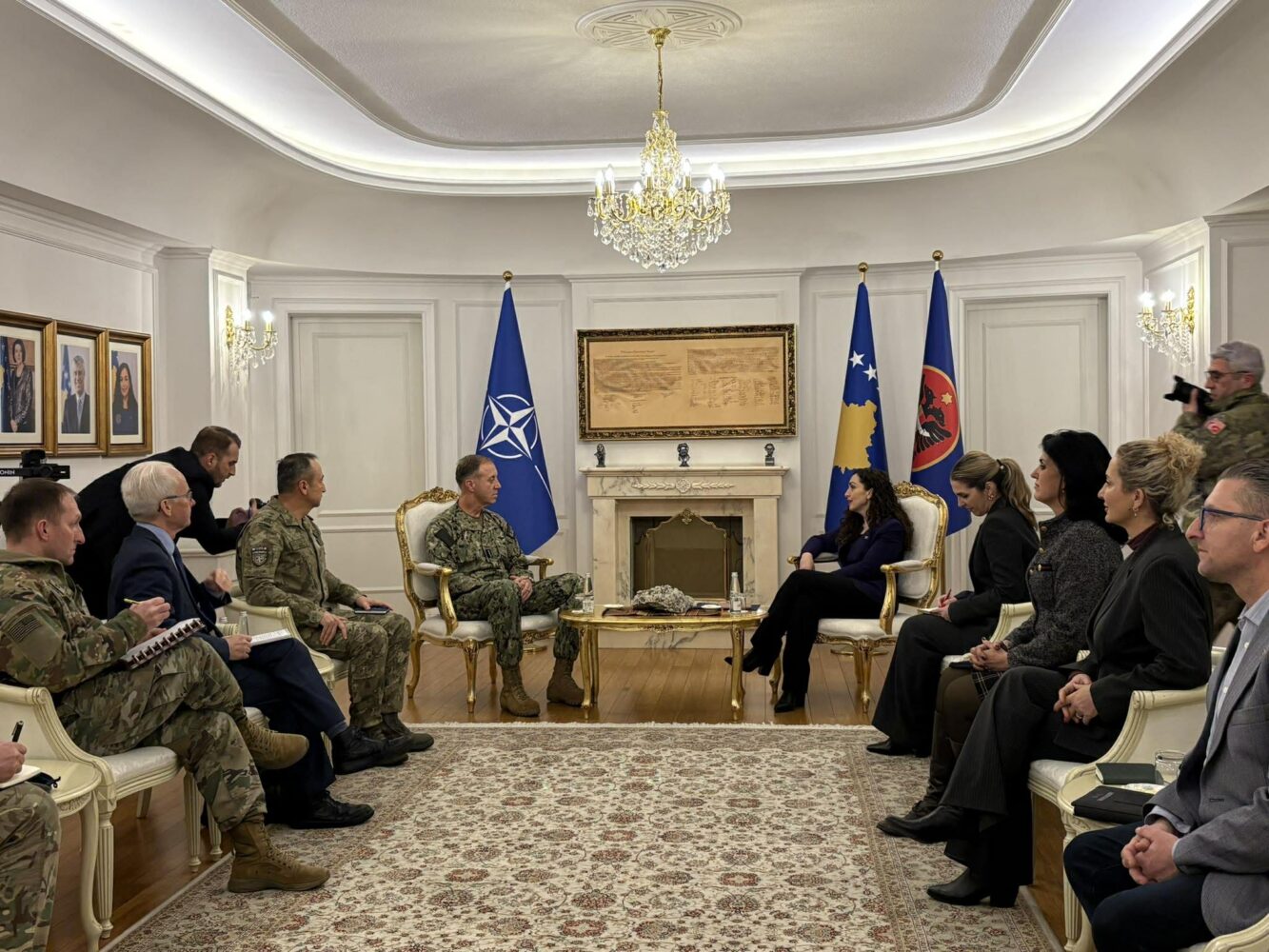 Presidentja e Republikës së Kosovës, Vjosa Osmani, sot në ora 16:40, ka pritur në takim Komandantin e Komandës së Forcave të Përbashkëta të NATO-s në Napoli, Admiralin George M. Wikoff, raporton Ekonomia Online.