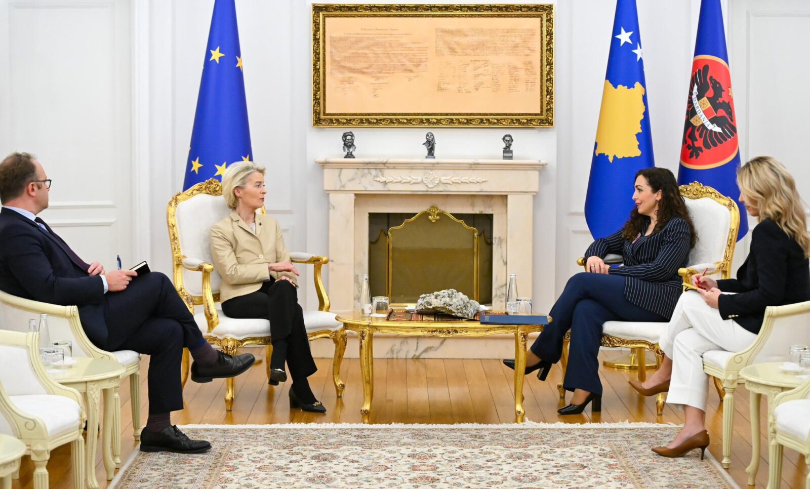 Presidentja e Kosovës, Vjosa Osmani ka pritur sot në takim presidenten e Komisionit Europian, Ursula von der Leyen.