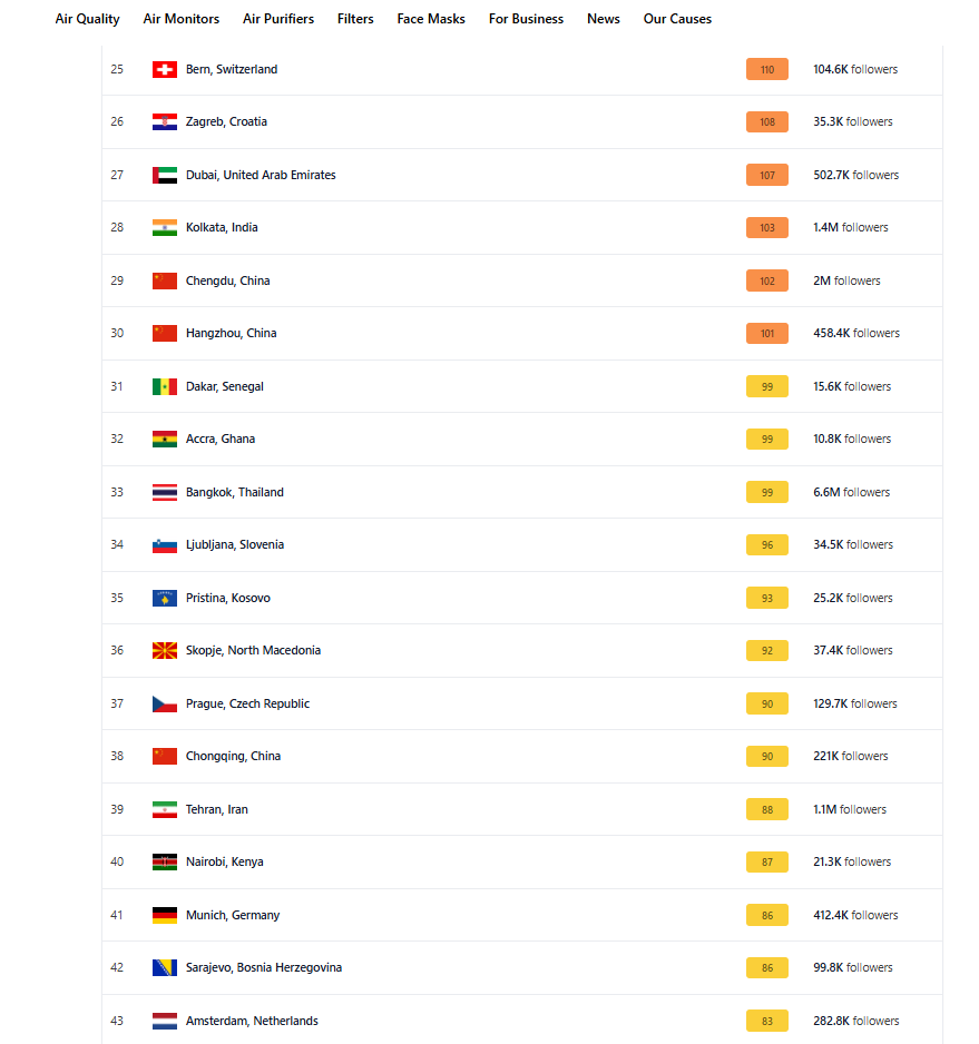 Kryeqyteti ynë, gjatë ditë së enjte po radhitet i 35-ti në botë sa i përket ndotjes së ajrit.