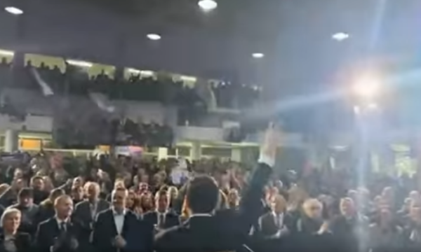Abdixhiku shihet teksa i përshëndet simpatizantët e LDK-së, ndërsa këta të fundit nuk ndalojnë duke brohoritur për partinë e tij.
