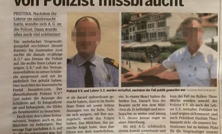 Rasti i abuzimit të së miturës nga Drenasi, A.G., e cila dyshohet se u keqpërdor seksualisht nga arsimtari dhe polici i saj, është raportuar edhe në gazetën zvicerane “20min”.