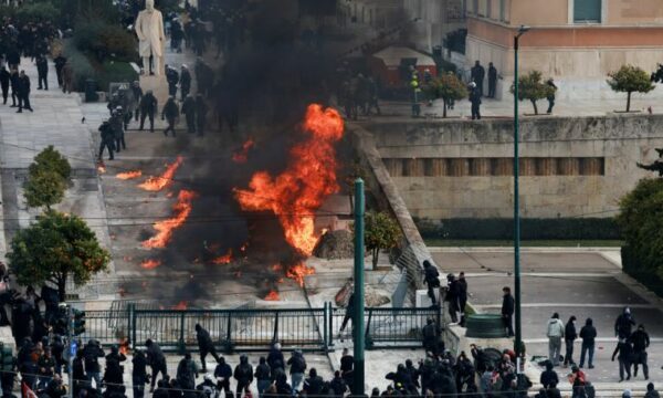Protestuesit e shumë të mbledhur në sheshin Sintagma në Athinë në 2-vjetorin e tragjedisë së Tempit janë përplasur dhunshëm me policinë.
