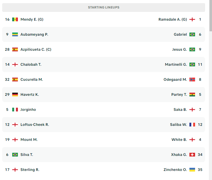 Publikohen formacionet e derbit të madh, Chelsea-Arsenal