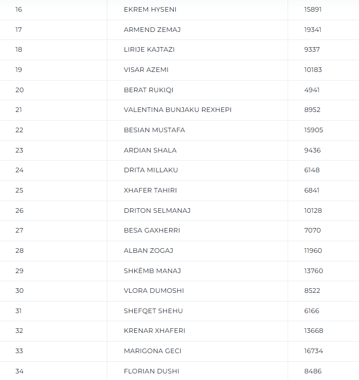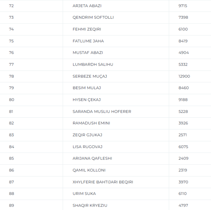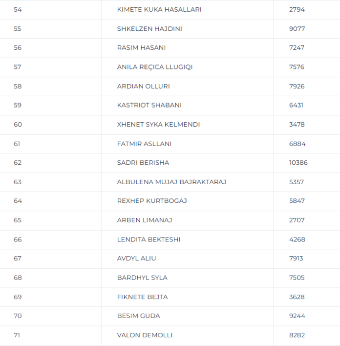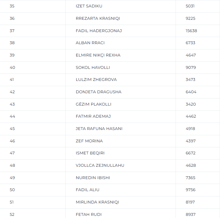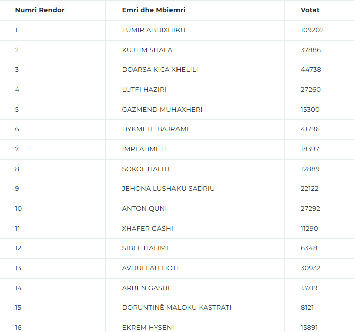 Komisioni Qendror i Zgjedhjeve e ka publikuar listën e plotë me votat e fituara nga kandidatët e LDK-së, pas procesimit të 90 për qind të votave.