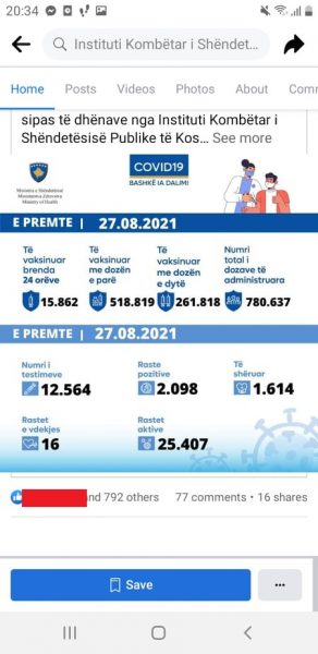 Instituti Kombëtar i Shëndetësisë Publike të Kosovës (IKSHPK), edhe sot njoftoi se mbi 2 mijë persona kanë rezultuar pozitivë brenda 24 orëve, gjithashtu edhe gjashtëmbëdhjetë tjerë kanë vdekur. E ata që shprehin pakënaqësi lidhur me këto shifra alarmante, po penalizohen nga IKSHPK.