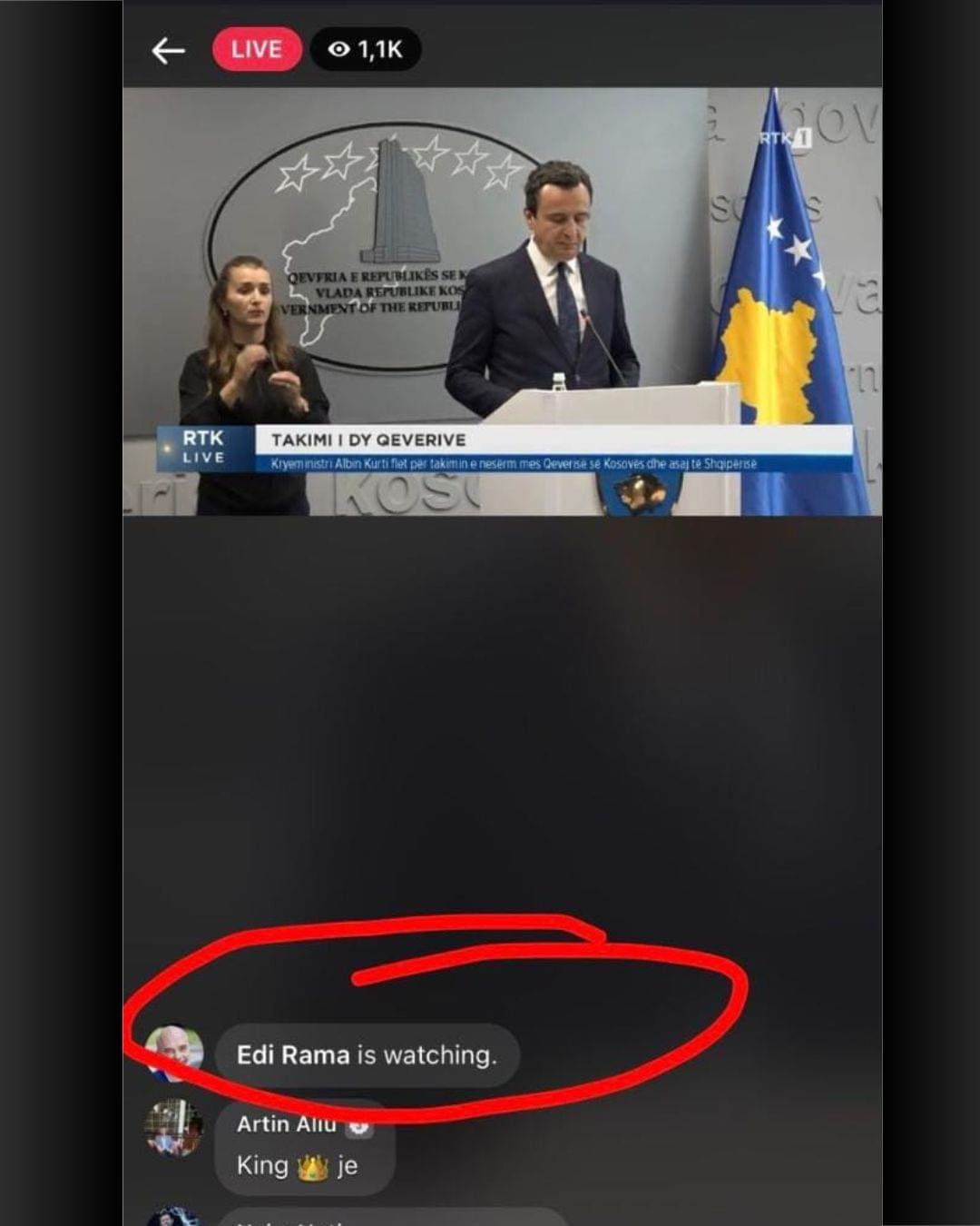 Përmes fotografisë së mëposhtme shihet faqja zyrtare e Edi Ramës duke e përcjellë kkëtë konferencë të Kurtit.