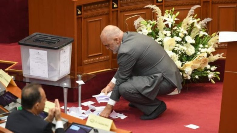 Kryeministri i Shqipërisë, Edi Rama në seancën e Kuvendit ku edhe po mbahet seanca për zgjedhjen e Lindita Nikollës, si kryetare të këtij institucione, iu ka përgjigjur protestës së deputetëve të Partisë Demokrate, të cilët po grisin fletat e votimit.