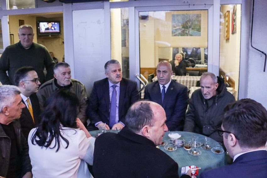 Ish- kryeministri Ramush Haradinaj ka vizituar Podujevën. AI bashkë me ministrin e Punëve të Brendshme, Agim Veliu dhe disa qytetarë kanë pirë çaj në një lokal në Podujevë.
