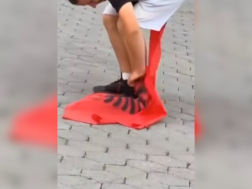 Janë publikuar disa pamje ku shihet një i ri duke e shqyer flamurin kombëtar.