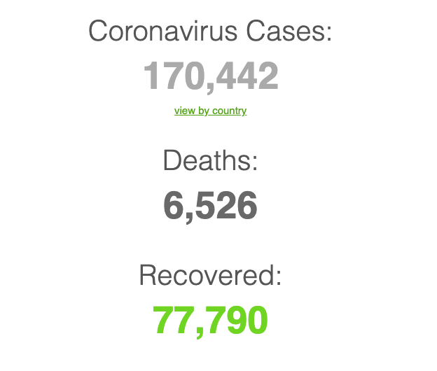 Janë konfirmuar 170,442 raste të infektuara me virusin covid-19 në botë.