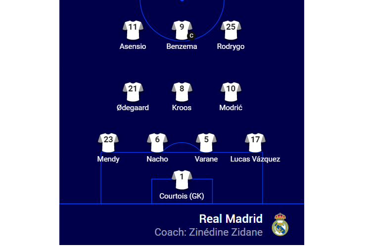 Për Real Madridin në formacion është kthyer Karim Benzema që ka munguar që disa ndeshje e që do të asistohet nga Rodrygo dhe Asensio.