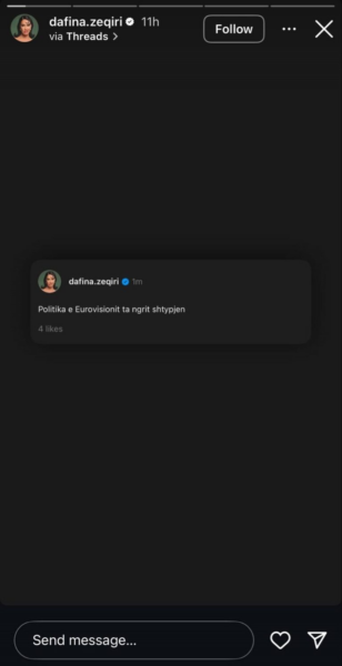 “Politika e Eurovizionit ta ngrit shtypjen”, ka shkruar shkurt artistja, duke lënë të nënkuptohet se renditja e Shqipërisë nuk ishte e drejtë dhe se rezultatet u ndikuan nga faktorë të jashtëm, jo vetëm nga performanca muzikore.