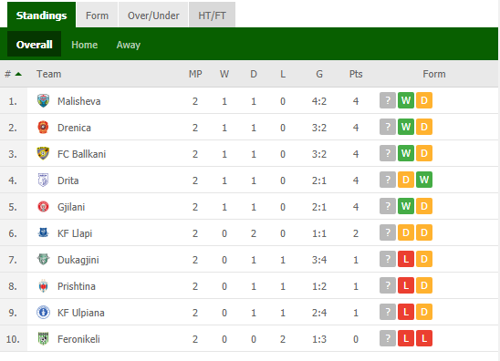 Llapi gjendet në vendin e gjashtë me dy pikë, kurse Dukagjini, Prishtina dhe Ulpiana kanë nga një.