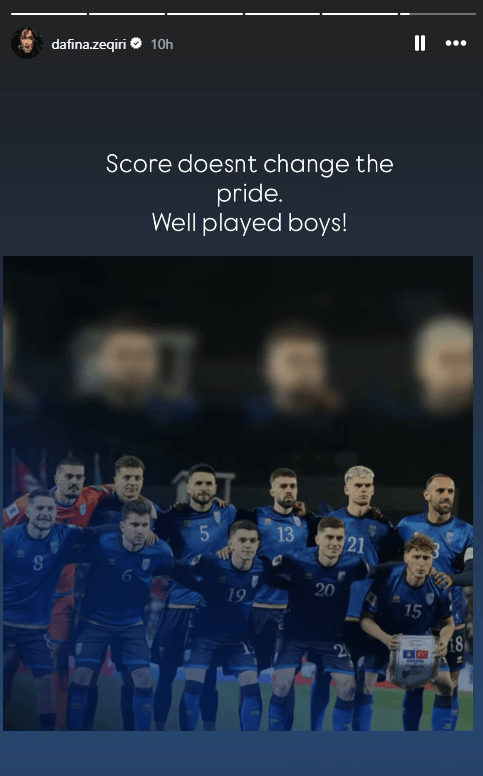 Këngëtarja Dafina Zeqiri shprehu mbështetjen e saj për Kombëtaren pas ndeshjes që u zhvillua në stadiumin “Fadil Vokrri”.