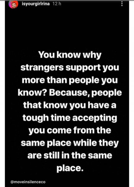 “A e di pse të huajit të mbështesin më shumë se njerëzit që njeh? Sepse njerëzve që njeh ju duhet shumë kohë për të pranuar faktin se ju vini nga i njëjti vend, teksa ata janë ende tek ai vend”, thuhet në postimin e dy artisteve.