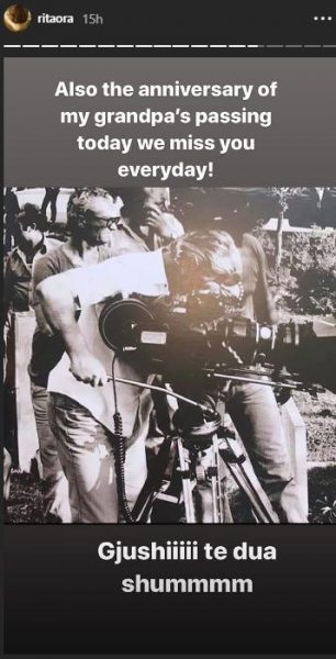 Mirëpo Rita ka kujtuar edhe ndarjen e gjyshit të saj nga jeta. Dje ka qenë përvjetori i tij i ndarjes nga jeta dhe këngëtarja ka shkruar se ai i mungon shumë.