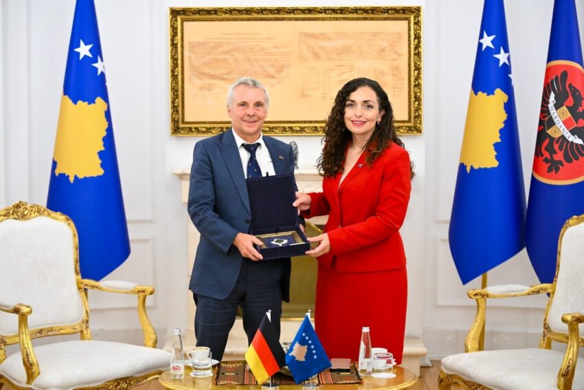 “Si një gjest personal, ai i dhuroi Presidentes Osmani reçel të bërë në shtëpi”, ka njoftuara ambasada e Gjermanisë në Kosovë.