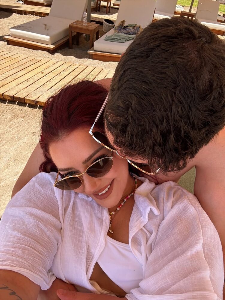 Në imazh, Ronela shihej në ambiente plazhi duke buzëqeshur krah partnerit, të cilit u kujdes të mos i zbulonte portretin.