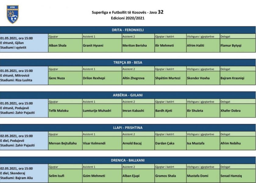 Në duelet tjera, Trepça ’89 dhe Arbëria e kanë të domosdoshme fitoren përballë Besës dhe Gjilanit.