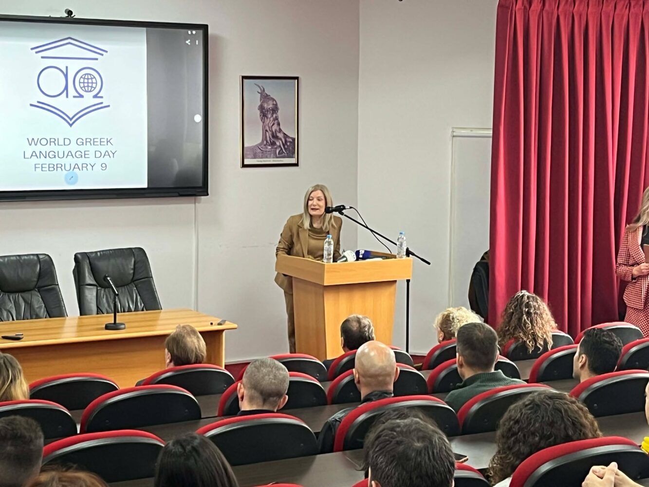 “Themelimi i Ditës Botërore të Gjuhës Greke konfirmon kontributin e qëndrueshëm të trashëgimisë gjuhësore greke në kulturën globale, shkencë, filozofi dhe mendim. Greqishtja është një nga pak gjuhët në botë me përdorim të pandërprerë të shkruar dhe të folur për më shumë se tre mijëvjeçarë, nga poezia epike e lashtë dhe filozofia klasike deri te letërsia bizantine dhe shkrimet moderne greke. Gjuha ka evoluar duke ruajtur një unitet të jashtëzakonshëm, duke përdorur gjithmonë të njëjtin alfabet, edhe pse ka ndryshuar gjatë shekujve, duke lënë gjurmë në filozofi dhe mendimin politik, në mjekësi dhe shkencat shëndetësore, në gjeometri dhe matematikë, në fizikë dhe astronomi”, tha ajo. Sipas saj, gjuha ka evoluar duke ruajtur një unitet të jashtëzakonshëm dhe të njëjtin alfabet ndër shekuj, ndërsa ka lënë gjurmë të thella në fusha si filozofia, mendimi politik, mjekësia, matematika, fizika dhe astronomia. “Ne të gjithë ndihemi të nderuar gjatë viteve tona në detyrë në përfaqësimin helen, falë përkushtimit, miqësisë dhe profesionalizmit të profesorëve të Fakultetit të Filologjisë të Universitetit të Prishtinës, të rinj të mrekullueshëm vazhdojnë të mësojnë greqisht në Qendrën e Gjuhëve të Huaja”, tha ajo.