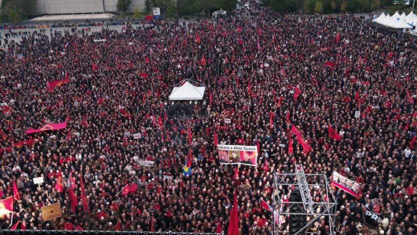 Sheshi “Skënderbej” i zë maksimalisht 160 mijë qytetarë, ai ishte i mbushur plotë me protestues mbrëmë