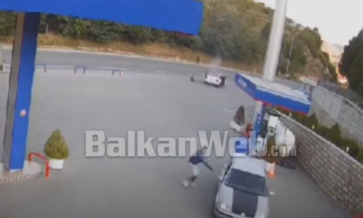 Në pamje shihet se pas shpërthimit të fuqishëm, makina është përfshirë nga flakët, që del fuqishëm edhe nga bagazhi, ndërkohë shihet se shoferi dhe pasagjeri dalin me shpejtësi nga mjeti, duke hapur dyert.
