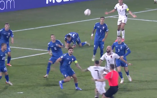 40’ Kanë mbetur edhe pesë minuta lojë deri në fund të pjesës së parë, ku gjyqtari në minutën e 37-të u konsultua me VAR-in për një prekje të mundshme me dorë të Laçit, por loja vazhdoi pasi VAR-i tha se nuk kishte një gjë të tillë.