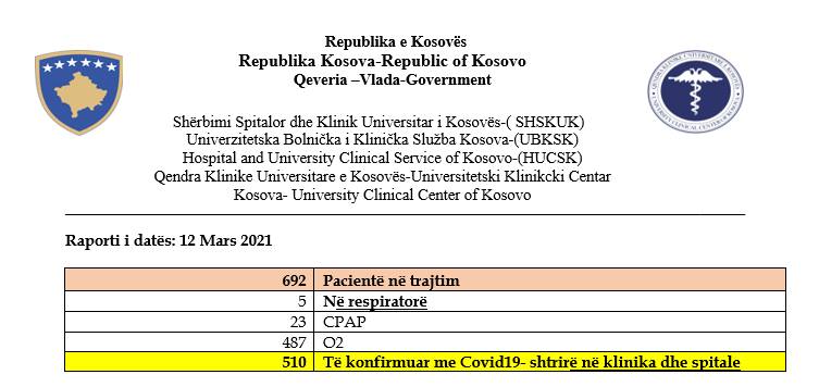 Shërbimi Spitalor Klinik Universitar i Kosovës ka njoftuar se gjithsej 692 pacientë janë duke u trajtuar për COVID-19 në QKUK dhe në spitalet rajonale të Kosovës.