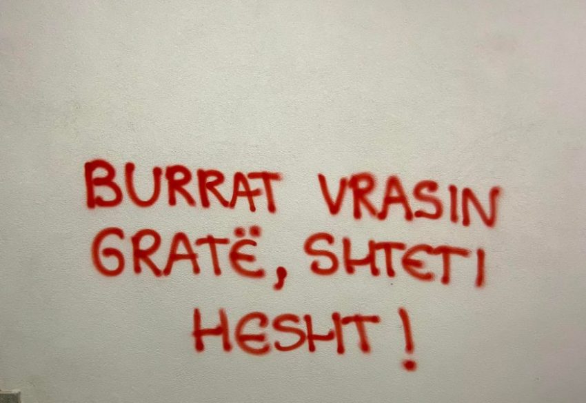 Në muret e policisë dhe në hapësira të tjera publike në Skenderaj, sot janë shënuar grafitet pas rastit të djeshëm që tronditi këtë qytet, ku një grua u vra nga burri i saj.